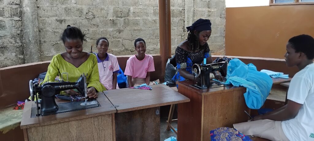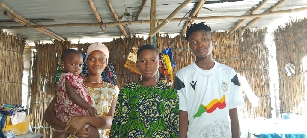 Notre objectif est de rendre cette famille autonome financièrement d’ici 2026. Pour cela, nous finançons la formation de Ferdinand (16 ans, apprenti coiffeur) et de Foussi Layo (18 ans, apprentie couturière). Une machine à coudre a déjà été réparée, et les travaux pour refaire la toiture de leur maison et de l’atelier ont commencé afin de stopper les importantes fuites d’eau.